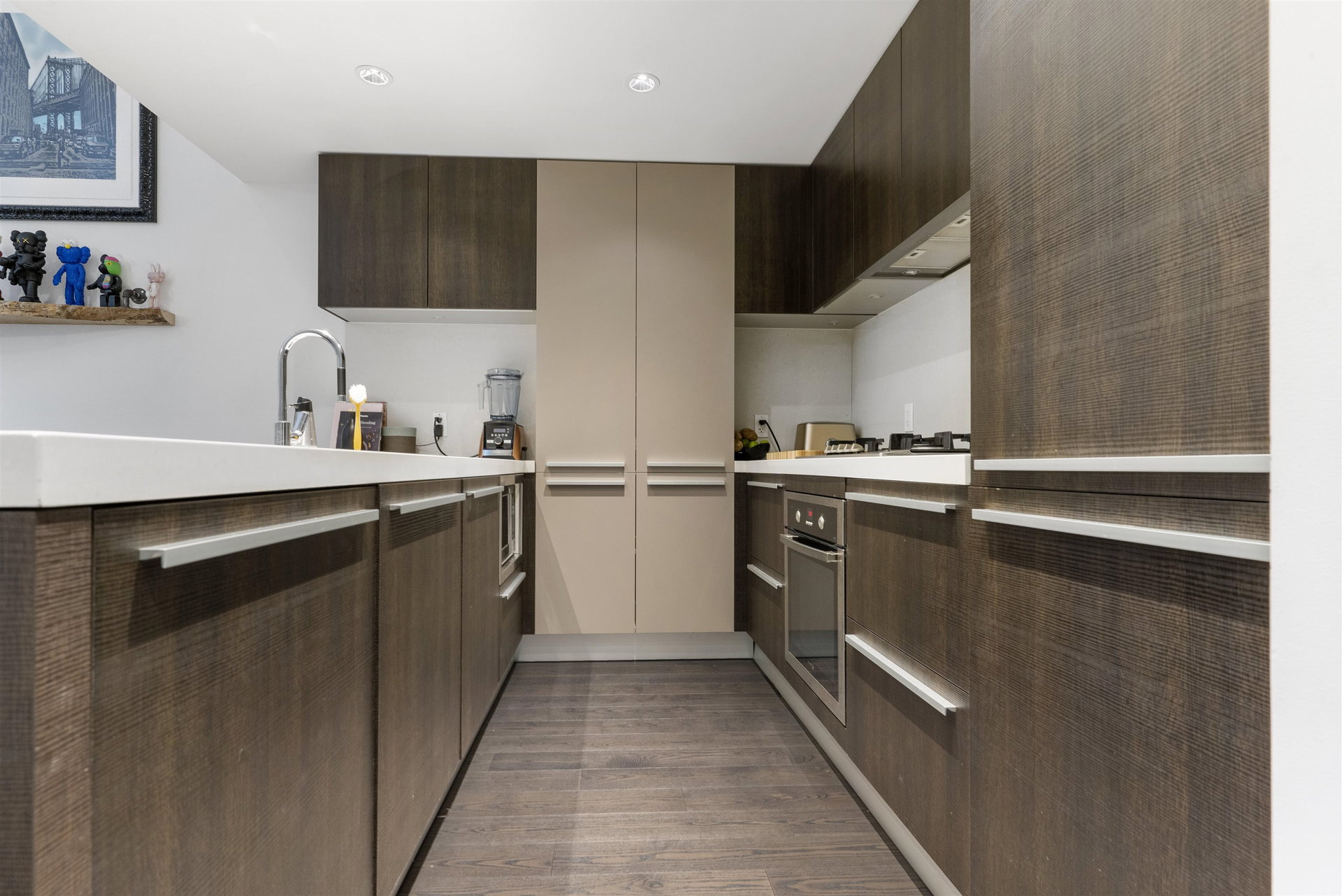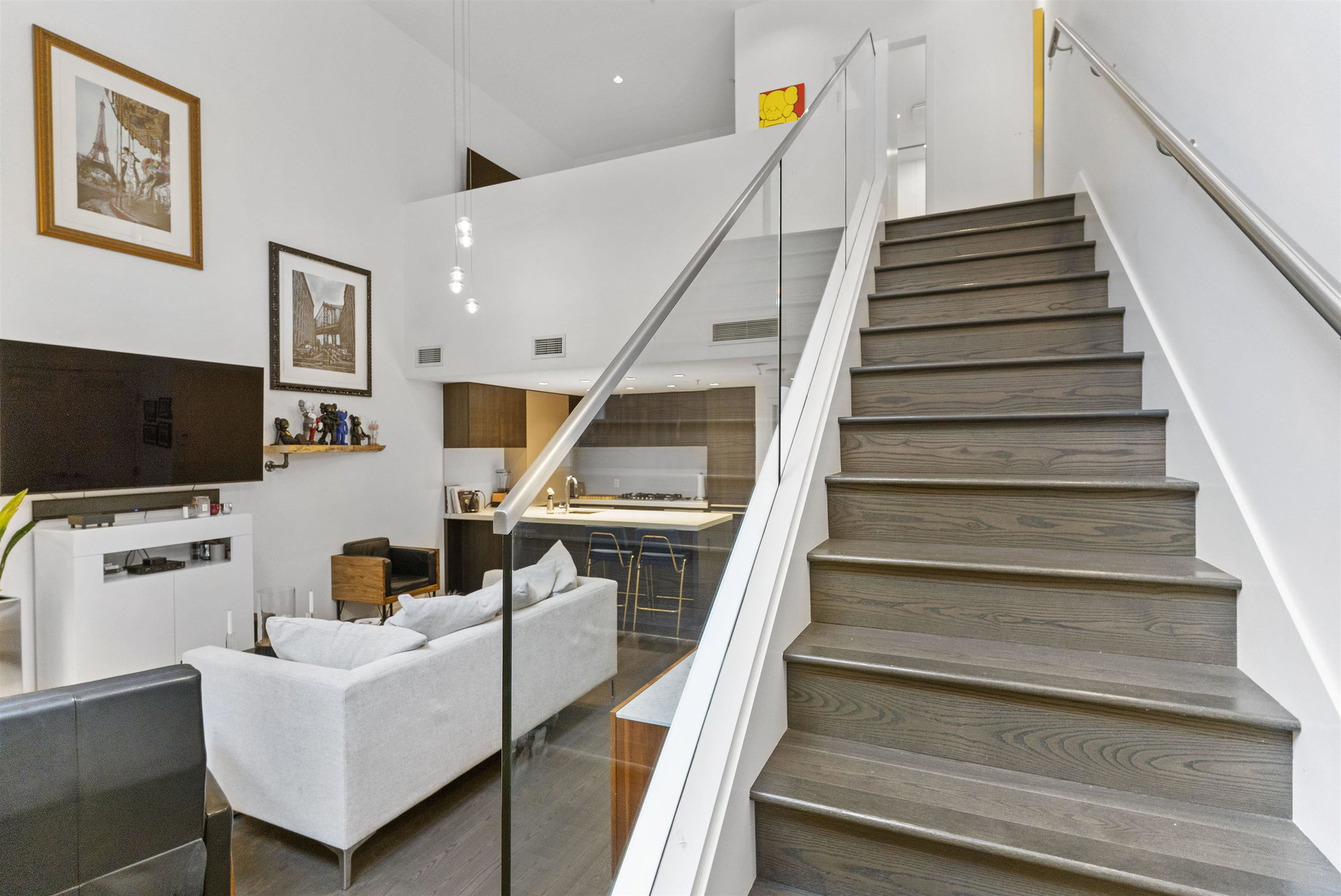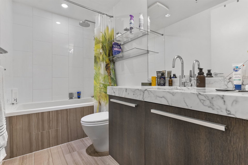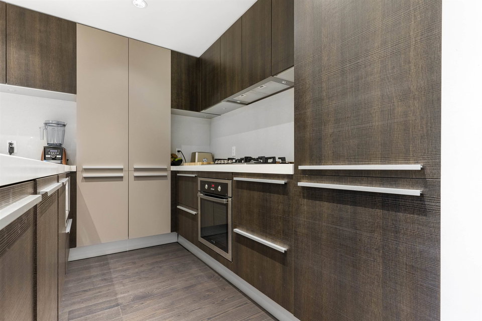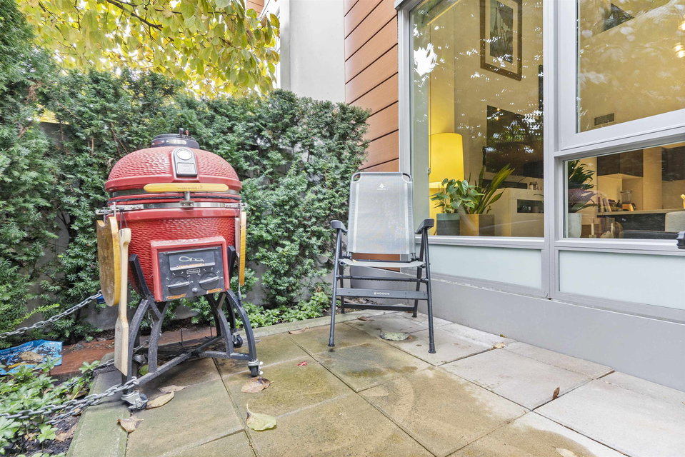 A unique and rarely available loft style street access Townhouse just steps from our world famous seawall, parks, coffee shops and everything that the close by BEACH DISTRICT has to offer. An end unit home with towering 18′ ceilings and massive floor to ceiling windows that drench the space in natural light. Sleek, modern and luxurious Italian cabinetry in the European inspired open concept kitchen that includes a gas range, built in oven and hidden fridge. Separate spacious storage that easily converts to that home office we could all use. Walk up the modern staircase flanked by seamless glass to the primary bedroom with ample closet space and a 4 piece bath that overlooks the living area. 24hr concierge, secure parking and storage locker included. OPEN HOUSE SAT/SUN OCT 30/31 12-2PM