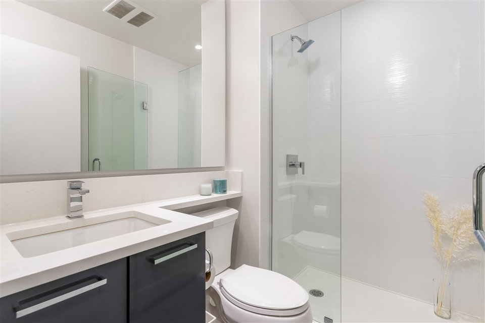 Situated in the Escala Terra building by Ledingham McAllister, this luxurious Burnaby home has a wonderful central location. Residents have a shopping mall on their doorstep, with a Save-on-Foods, London Drugs and numerous popular restaurants. Gilmore station and Willingdon Community Centre are also nearby. The suite has a bright, spacious layout and features an open concept kitchen, caesarstone countertops, stainless steel appliances and master bedroom with walk-in closet and spa-like ensuite. Building amenities include indoor pool, sauna/steam room, fitness room, yoga studio, as well as guest suites, beautiful fireside lounge and state of the art catering kitchen. Parking stall and storage unit included. Come and view April 21st 6:00-8:30pm or 24th @11-3pm. Check out our virtual tour!